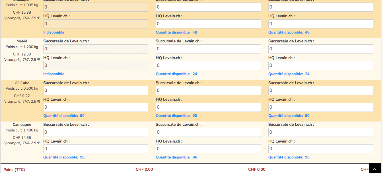 Les commandes doivent être réalisées via le formulaire prévu à cet effet (b2b.levain.ch/formulaire/)